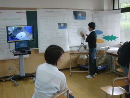 学科紹介(教科書展示)と「科学技術基礎」作品展示の様子です。