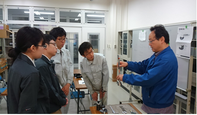 厚生労働省及び京都府職業能力開発協会が管轄している「ものづくりマイスター制度」を利用し,機械検査技術のスペシャリストであるトタニ技研工業株式会社生産管理部工場長の中村知之氏を講師としてお招きし,今回はノギスやマイクロメーター等の測定器の使い方・読み方の練習をしました。