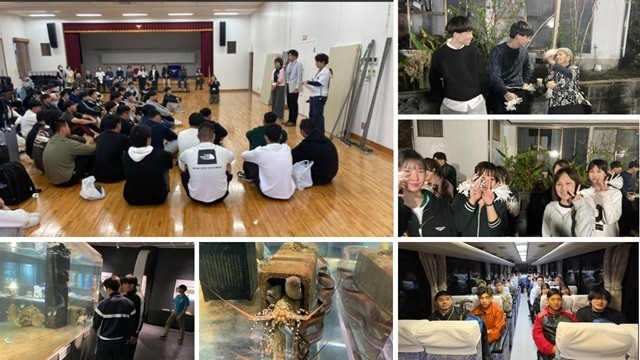奄美班では、昨日奄美海洋展示館を訪れました。移動のバスで休息を取ったこともあり、到着後は生徒たちも元気に活動し、ウミガメの餌やり体験では笑顔があふれていました。館内の大きなエビの展示にも興味津々で、奄美の海の生き物や自然について学びを深める良い機会となりました。