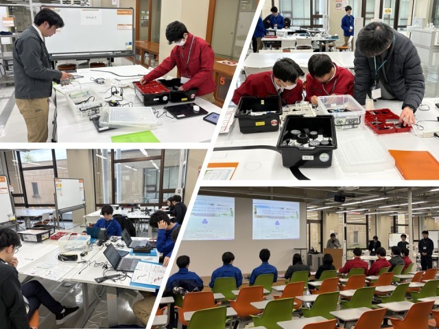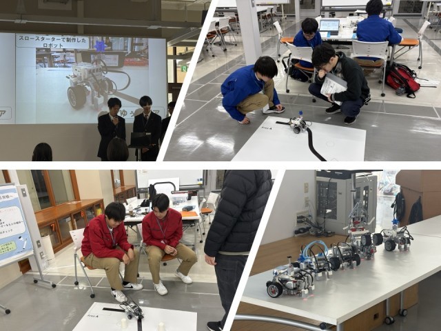 3/14(土)〜3/16(月)に金沢工業大学において宿泊研修を実施し、7名の生徒が参加しました。LEGOによるライントレースプログラムを実施し、1日目に基本ロボットを製作し、2日目に様々な制御方法を学び、3日目にはチームで制御したロボットでタイムレースを行いました。プログラムでは、金沢工業大学の先生をはじめとし、多くの大学生からアドバイスをもらう中で、大学での学びとは何かを知り、工学的な実験と考察のプロセスを学ぶことができました。普段の学びではなかなかイメージができなかったことも、実際に飛行機やロボットを動かし、理論と実践を往還することで、深い理論的考察が可能となりました。