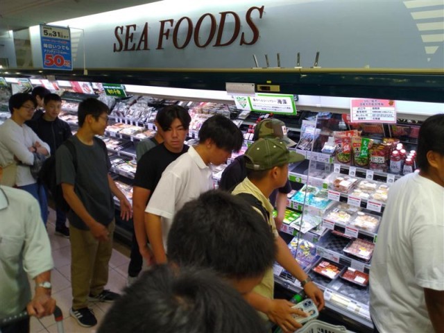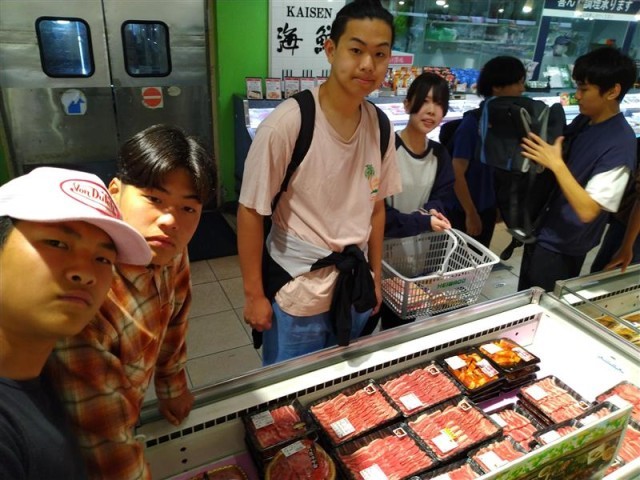 朝は集合後、班ごとに分かれてバーベキュー用の食材を買い出し中です。何を買うか相談したり、予算を意識しながら選んだりと、自然と会話も弾み、和やかな雰囲気の中で準備が進んでいます。クラスや学年でのまとまりを感じさせる場面が、早くも見られました。