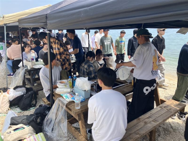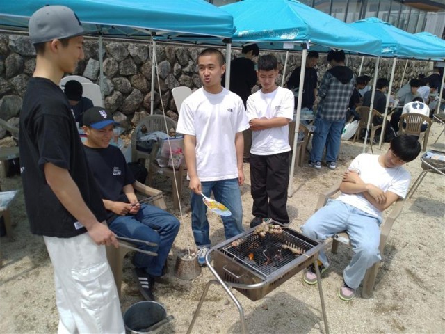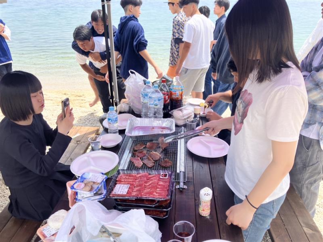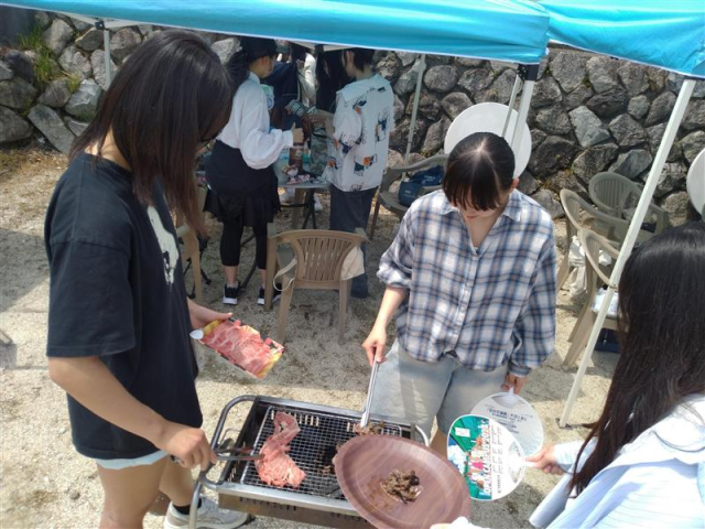 最初は火を点けるのに苦労する場面も見られましたが、班ごとに協力するうちに炭も安定し、次第に美味しそうな匂いが広がっていきました。
