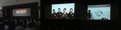 写真は,吹奏楽部演奏中の会場の様子です。中高合同成功の要は,中学生徒会,高校自治会の連携,協力です。生徒会長,自治会長よろしくお願いします。