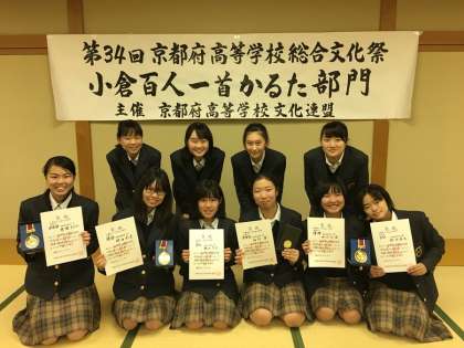 11月4日(土)5日(日)の2日間にわたって京都文化博物館6階和室にて行われました第34回京都府高等学校総合文化祭小倉百人一首かるた部門に,本校競技かるた部10名が出場しました。
