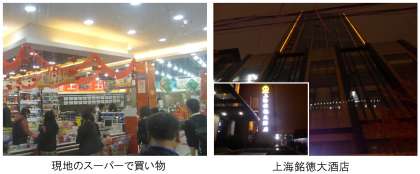 夕食会場を出て,スーパーで40分間,ショッピングをしました。現地の方が普通に買い物をするスーパーで,初めて「元」を使って買い物をしました。6日分の飲料やお菓子,夜食等を購入しましたが,多くの人が30〜50元(1元は約18円)程度を使っていたようです。