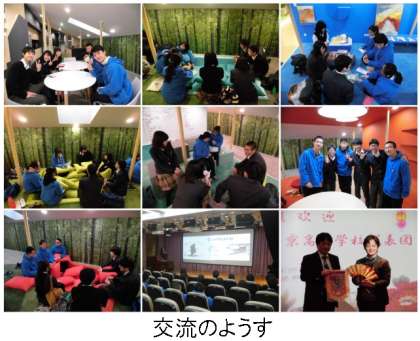 小雨の中,甘泉外国語中学校を訪れ,日本語を学習しているクラスの生徒さん達と交流を行いました。全体会の後の班別交流では,今年度新築された素晴らしい施設を使って,プレゼント交換や様々な文化交流を行いました。この学校は公立の中高一貫校であり,留学生を受け入れたり,多彩な外国語の授業を行ったりするなど,広く世界を見据えた教育を行っています。日本の高校では見られないような充実した施設も見学させて頂きました。案内して下さった日本語教育担当の先生から教育内容や実践などをお聞きし,それらの成果が展示されている複数の施設も見学しました。卒業生の多くが日本を含めた世界中の大学に進学・留学し,世界中で活躍していることに本校の生徒達は驚きを覚え,刺激を受けたと話していました。