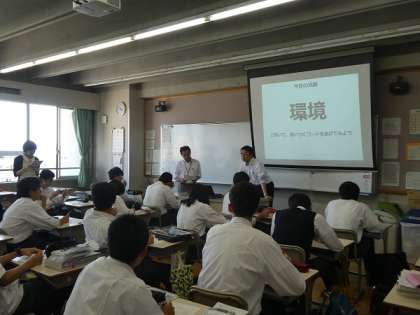 ゼミ開き初日の6月1日(金)6限は,海外FWの取組の最後の時間という事で,各コースに分かれて,発表会の振り返りを行い次に始まるゼミ活動にむけての健闘を誓い合いました。7限は,各ゼミで初回の授業が始まります。今回「環境科学ゼミ」にお邪魔しました。初めて顔を合わす生徒や先生が所属しているので,自己紹介や,「環境」から想像することは何か,「環境問題」について知っていることは何かを交流しました。このゼミは,理系ばかりかと思いましたが,文系からも参加があると聞き非常に頼もしく思いました。文理の分け隔てなく発想の幅が広がることを願っています。