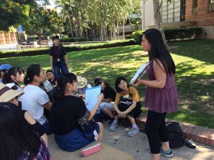 午後からは,班ごとに分かれて,Scavenger Hunt Campus Tour と Interview Activityを行いました。それぞれがUCLA内の学生や留学生などにいくつかの質問についてインタビューを行いました。