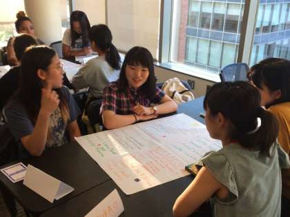 夕食後のEvening Session1では,午前中にまとめた内容についてのプレゼンテーションを行いました。その後スマホをテーマとしたDivergent Thinking を行い,各班でユニークなアイデアを発表しました。その際にも現地スタッフのLianaさんが教員に対し,「西京高校の生徒の皆さんが,英語をたくさん話すので良い」と言ってくださいました。