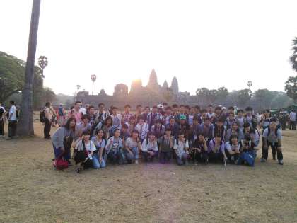 ベトナム・カンボジアコース3日目は,朝日鑑賞を行うため早朝の5時20分の集合でしたが,全員遅れることなく集合でき,アンコールワットへと出発しました。アンコールワットでの朝日鑑賞は,息を飲むような美しい朝日を見ることができ,多くの生徒が感動し,見惚れていました。