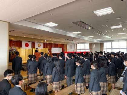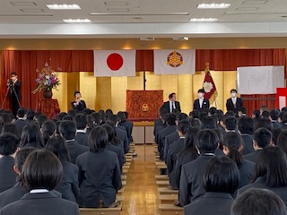 結びにあたりまして,本日ご列席の保護者の皆さまに,心よりのご祝詞を申し上げ,さらに力強いご支援を本校教育に寄せられることをお願いいたしまして,本日の式辞といたします。