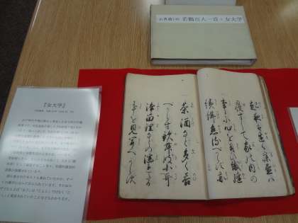 図書館では,本校が書庫に収蔵している貴重な本を展示しています。本校の創立は明治19年,伝統ある学校であるからこその収蔵図書です。明治期や大正期に収蔵した貴重な書籍を展示していますので,ぜひご来館ください。