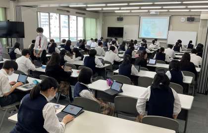 5月28日には,北九州市が行うSDGsの取組を「ヒト」「モノ」「マチ」の3つの観点に分け,生徒自身が興味関心のある観点について考えを深めました。その後,奄美大島の事前学習を行いました。生徒全員が「歴史」「自然」「観光」「暮らし・文化」のいずれかのテーマを調べグループ学習を行った後,FW委員が代表して発表を行い,奄美大島についての理解を深めました。