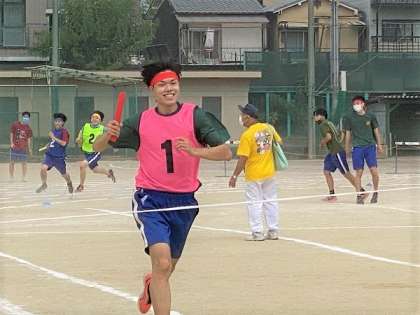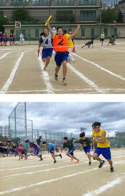 午前中の最後の種目,クラス対抗リレーです。女子の部に教員チームも参加しました。