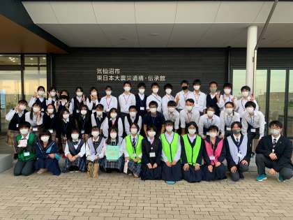 今日は,仙台空港に到着後,バスで気仙沼市東日本震災遺構・伝承館へ行きました。伝承館は,津波の被害に遭った気仙沼向洋高校の校舎や教室が当時のまま残されています。気仙沼向洋高校の語り部クラブの生徒の皆さんに,館内を案内してもらいました。動画を閲覧し,中には涙を流す人もいました。その後,各班で交流会を行いました。非常に有意義な時間になったと思います。最後は別れを惜しんで出発しました。