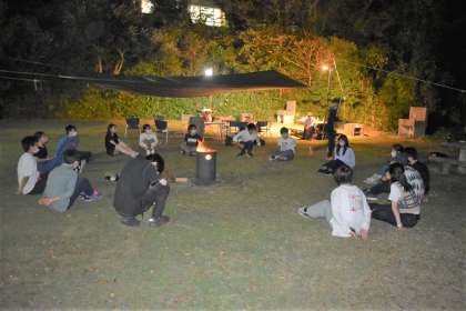 夜は満点の星空の下で夕食です。キャンプファイヤーも行い,隠岐の自然を存分に満喫しました。明日は島前へ移動し,本格的に研修を開始します。