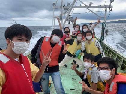 中:漁業体験の漁船にて