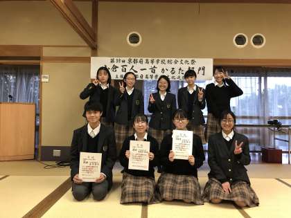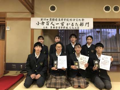 今回の結果を受けて京都小倉かるた会会長の山本純子様より昇段の御推薦をいただいた生徒もおり,日頃の練習の成果が報われたことを大いに喜んでおりました。今回惜しくも入賞がかなわなかった生徒も含めて,部員一同さらなる技量向上をめざして今後も練習に励みたいと思います。これからもどうぞ応援よろしくお願いいたします!