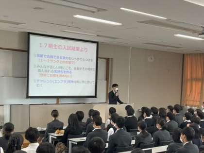 進路アセンブリでは卒業した17期生が粘り強く最後まで成績を伸ばし続けてたこと,18期生も簡単に諦めることなく,第一志望に向けて前向きに,強気に進んでいこうというメッセージがありました。