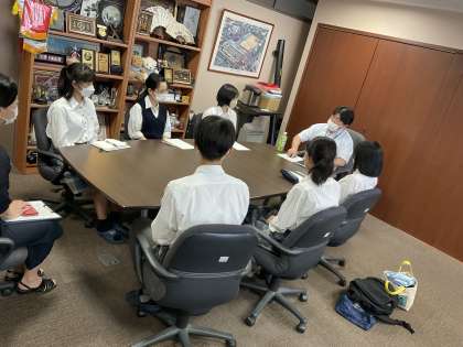 6月14日の放課後に、今年の夏から約10か月から1年間の長期留学に出発する6人(1年生4人,2年生2人)の生徒の壮行会が校長室で行われました。留学先は,アメリカ,フィリピン,フランス,イタリアなど多様です。生徒たちは、留学しようと思った理由や、留学先で学びたいこと・やりたいことを堂々と語ってくれていました。