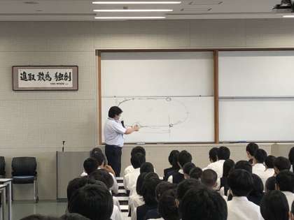 7月7日7限目、3年生の進路アセンブリを行いました。テーマは「高校3年生の夏の過ごし方」で、岩佐校長と進路指導部からは「夏休みの勉強の心構え」について、各教科担当者からは「この夏の勉強のポイント」についてお話しました。