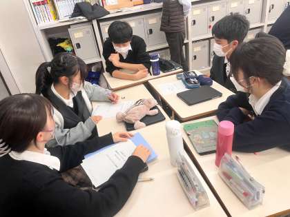 今回は各班でリサーチクエスチョンを設定し、アンケート内容を考えました。ある班では、先日の学校説明会を経て、西京生だけが知っている学校の魅力を伝えたいという目的をもってリサーチクエスチョンを設定していました。テーマが広すぎるとデータの分析が複雑になってしまったり、調査があやふやになってしまったりと苦戦していましたが、各班で協力して調査可能となるリサーチクエスチョンを設定していました。また、アンケート項目は本当に必要なデータを回収するためにはどうしたらいいかを考えることが大変だったようです。