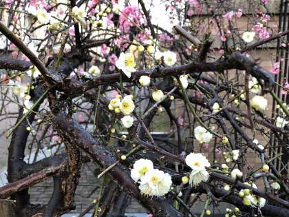 紅白一対の枝垂れ梅が咲きました!