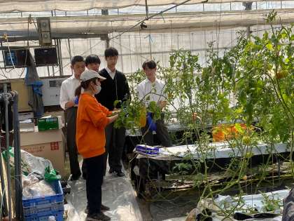 中:トマト農園を訪問