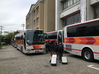 4月24日(月)朝8時45分、1年生を乗せたバスが本校を出発しました。1年生は今日から3日間、ホテルアンドリゾーツ京都宮津にて学習合宿を行います。