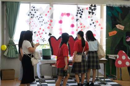 1年生は各クラスで趣向を凝らした教室展示を行っています。皆さん、是非遊びに来てください!