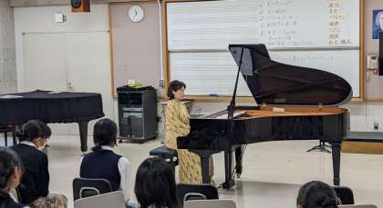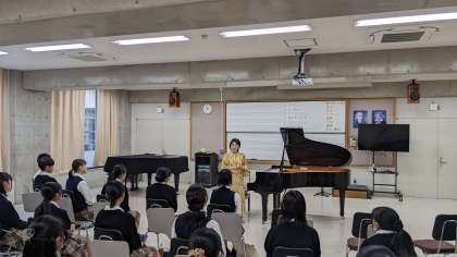 10月17日、18日の2日間、ピアニストの田村緑様をお迎えして音楽特別授業を行いました。この取組は文化庁「文化芸術による子供育成推進事業」の一環として実施されるもので、2年生音楽選択の生徒たちが参加しました。