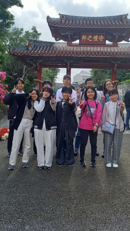 最終日は首里城を見学しました。首里城と沖縄の歴史、首里城の建物や周辺の地理、文化など様々な視点から見学していました。首里城が多くの戦火で焼けながらも復興を果たしていったこと、かつて置かれた軍司令部のことなど、生徒たちの琴線に触れるものが数多くあったようでした。首里城は復旧工事中でしたが、普段見られない建設中の部分を見る事ができて、とても貴重な体験でした。