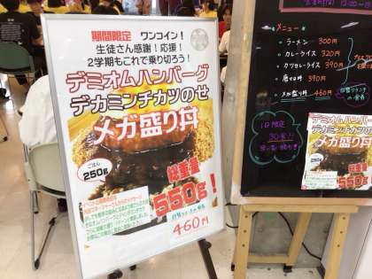 地下にある食堂は、西京祭の間も営業していただいています。昨年も大好評だった、西京祭期間限定メニュー「メガ盛り丼」が今年も登場しています!