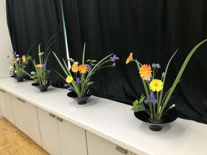 1時間目は講師の先生から実演を交えて生け花の歴史や、日本と西洋の美に対する考え方の違いなど、生け花の基本を教えていただきました。2時間目は実際に生徒一人ひとりが真剣に花と向き合い、作品づくりに取り組みました。講師の先生から的確なアドバイスをいただいたことでさらに完成度も上がり、個性あふれる素敵な作品が出来上がりました!