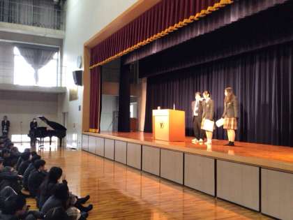 初めに校長先生からご挨拶していただいた後、様々な大会で活躍した生徒の表彰を行いました。表彰では各生徒から今後の抱負も語ってもらい、会場は大きな拍手に包まれました。