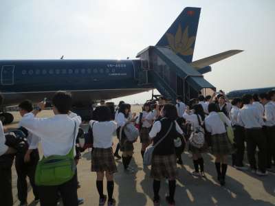 ○ホーチミン空港到着。飛行機を乗り継いで1日目の目的地シェムリアップに向かいます。気温は34度。暑いです。