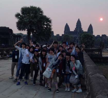 ○2日目朝、アンコールワット朝日鑑賞に出かけました。素晴らしい朝日とともに、生徒たちの笑顔も眩しいです。今日はアンコールトムの清掃活動を頑張ります。