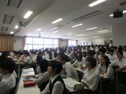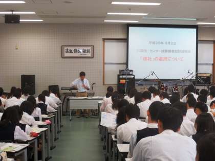 9月2日(火)4限,7階大講義室にて3年生全員を対象にセンター試験の願書配付・校内説明会を行いました。