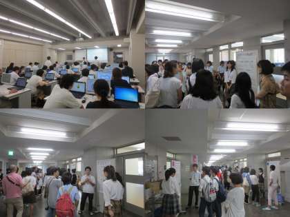 中でも,1・2年生生徒によるポスター発表形式での説明(西京生の一日や海外フィールドワークについて等)のブースは大変盛況でした。生徒スタッフとの質疑応答などを通して,実際の西京生の姿をごらんいただくことができたのではないでしょうか。
