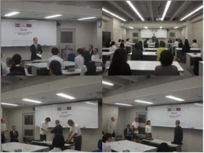 7月17日(金)午後2時から,1階138教室において,本校主催の「エンタープライズトップリーダー研修」(以下,TL研修と略します)生徒派遣に当たっての京一商西京同窓会様からの奨学金授与式及び結団式を行いました。