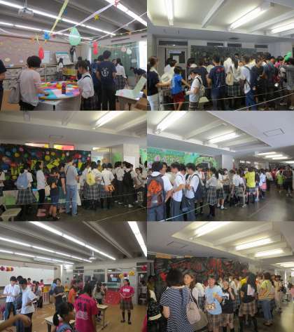 昨日までの中学・高校生や保護者の方々に加えて,招待された在校生の友人や,8月の学校説明会で配付した「特別入場券」をお持ちの中学3年生の皆さんも,多数観覧して下さっています。