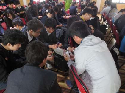 午前中は,学校交流を行いました。最初はお互いに表情が硬かった両校の生徒たちでしたが,時が経つにつれて緊張もほぐれ,和やかなムードで交流することができました。折り紙や,ドッジボールなどを行いました。最後は現地の女子生徒に囲まれる男子生徒が現れるなど,生徒たちは終始笑顔で,交流は大成功でした。
