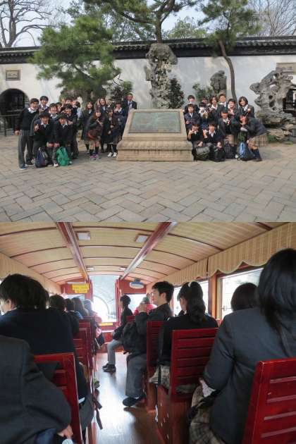 午後からは,蘇州市内の見学を行いました。世界遺産の拙政園,漢詩で有名な寒山寺を見学し,最後は山塘街の運河遊覧船に乗りました。現地の生活や文化を肌で感じることができ,刺激的な1日になりました。