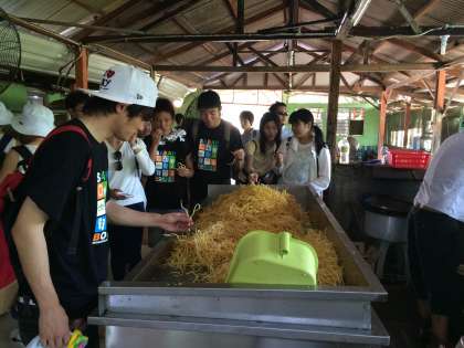 クアラルンプール空港からバスに乗ってバンフリス村に向かいました。農業を営んでいるこの村で,チップス工場やコーヒー畑,ゴム園を見学しました。