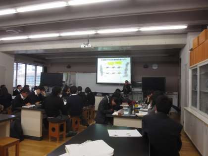 3月9日(水)[2年学年末考査の最終日でした]午後,2階生物室にて,「生物研究I」の特別講義を行いました。
