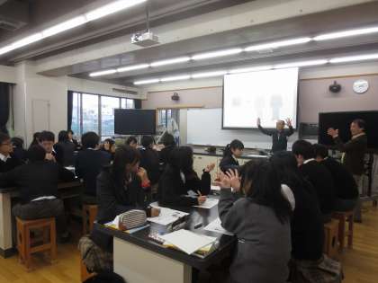 教科書にはまだ書かれていない,最新の驚きに満ちた内容に生徒も熱中し,阿形先生の問い掛けに対してグループで話し合いながらそのメカニズムについて考察を深めるなど,刺激に満ちた特別講義となりました。最初は約90分間を予定していた講義は結局3時間に及び,終了後にも質問が続出して,教授と生徒の交流が更に続きました。