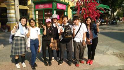 自己紹介のあと,事前に計画していた予定にもとづいてホーチミンの町に出かけていき,フィールドワークを行いました。集合時間の17時には,全員がホテルに戻ってきました。西京生たちが,バディとして半日をともに過ごしたマリキュリー高校生との別れをいつまでも惜しむ姿が大変印象的でした。