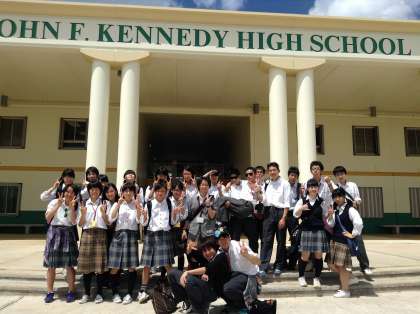 とうとうグアムでの活動最終日になりました。いつもより早くに集合して,徒歩でJFK高校へ向かいました。