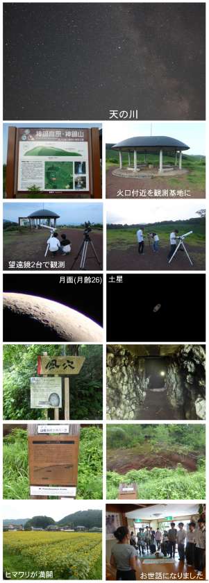 理学部では,7月30日(土)から8月1日(月)の3日間,ヒマワリが満開の神鍋高原で合宿を行い,夜間は天体観測を,昼間は地域の自然に注目した探索を中心とした活動をいたしました。