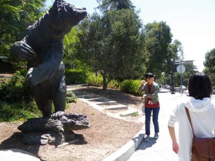 午後はUCB Walking Tourです。午前中にお世話下さったStudent Leaderがガイドとなり,班に分かれてバークレー校の広大なキャンパス見学をしました。大学のシンボルである時計台は,上に登ると大学全体が見渡せ,時間になると鐘が鳴り響きます。どこも圧巻の規模で,素晴らしい施設に生徒たちも羨ましく感じていました。短時間,売店で買い物を楽しんだ後,指定された場所の写真をとってくる等のミッションを与えられ,一番早かった班にはプレゼントが手渡されました。